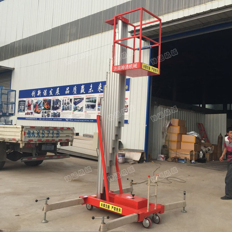 產(chǎn)品介紹:鋁合金升降平臺,采用高強度優(yōu)質(zhì)鋁合金材料,具有造型美觀、體積小、重量輕、運轉(zhuǎn)靈活,推行方便。單柱鋁合金升降機(jī),升降平穩(wěn)、安全可靠等優(yōu)點,能穿越一般門廳,可隨意進(jìn)出電梯,能在極小的空間內(nèi)發(fā)揮最高的舉升能力。使單人高空作業(yè)變得輕而易舉。且耗電少、無污染、工作時不傷地面,可用于貼墻作業(yè)及探出作業(yè)!鋁合液壓金升降平臺分為單柱、雙柱、三柱和四柱等。
